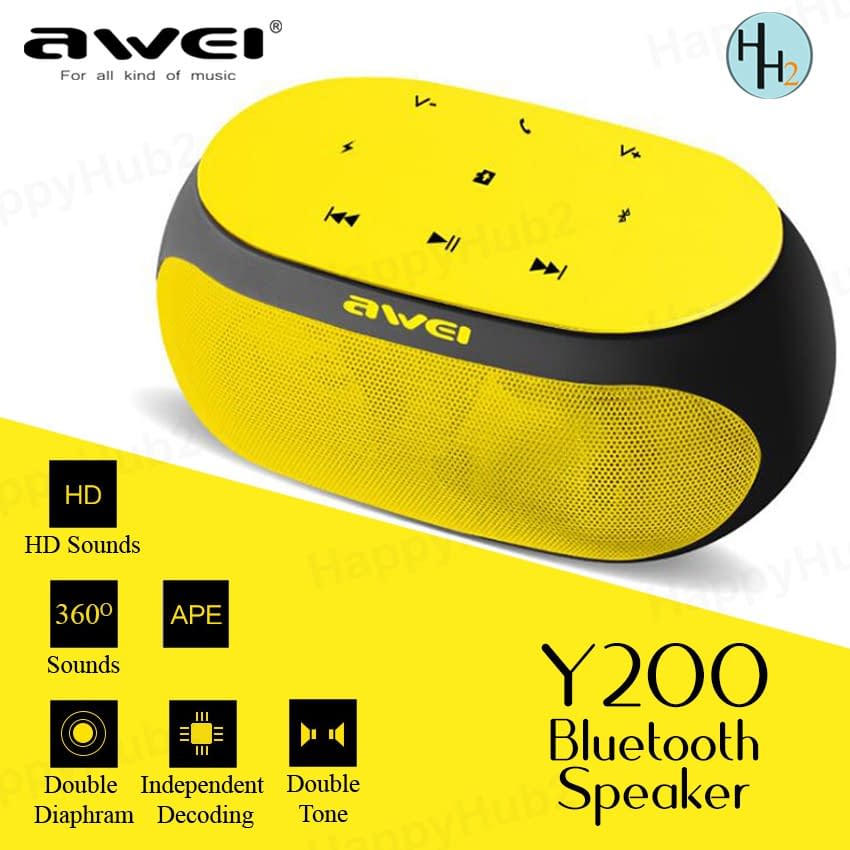 Carry your music anywhere with Awei Y200 speaker. Loud sound with minimum distortion.?It supports connection to music devices via Bluetooth, Micro SD Card (TF), and AUX 3.5 mm.