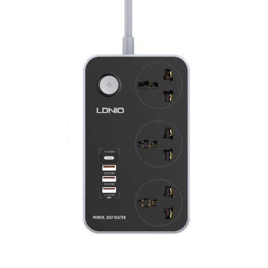 LDNIO SC3412 Power Strip Socket Surge Protector 38W USB PD Charger With 3 Universal AC Outlets / 18W QC3.0 USB * 3 / 20W USB-C PD Fast Charging 2m Power Cord.