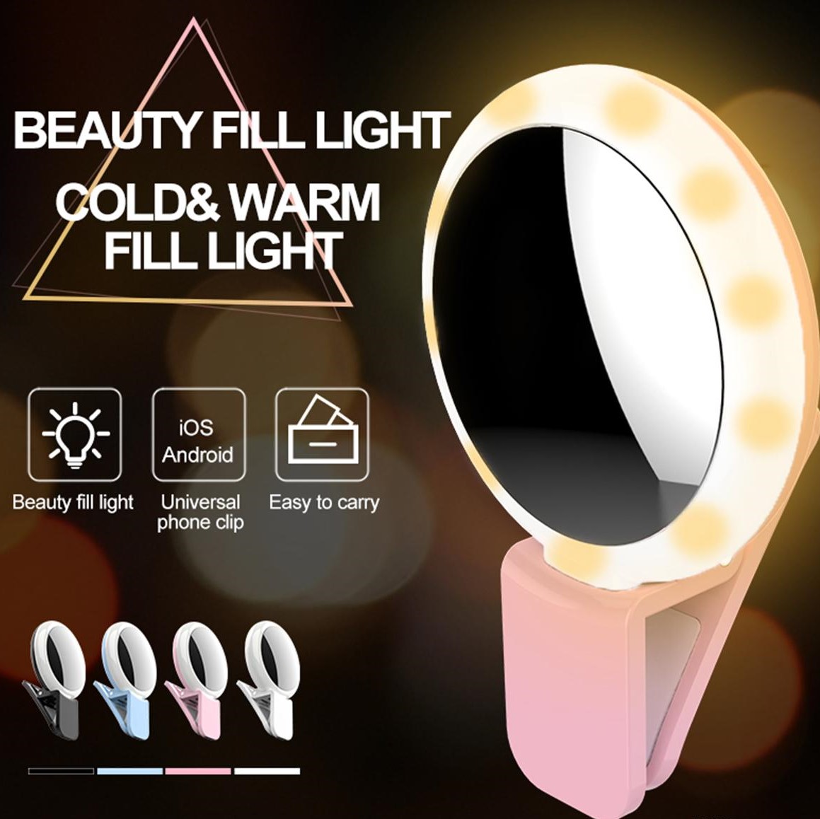 Can be applied to the scene: mobile phone camera, mobile phone fill light, can also be used for computer video fill light. Indoors, in poor light, at night, he can make you love self-beauty, and apply to any mobile phone