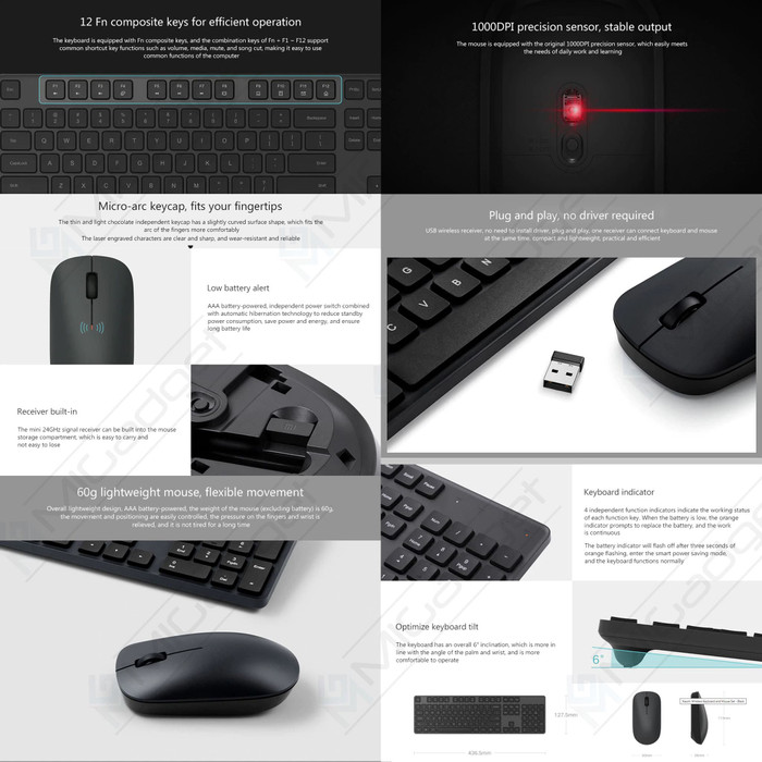 - Net weight: keyboard 500g (without battery); mouse 60g (without battery)